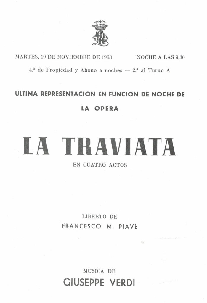 _ Programa del Liceu – 19 novembre 1963 – LA TRAVIATA –