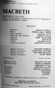 _ Programa del Liceu – 6, 9 i 13 desembre 1979 – MACBETH – Coreografia i 1ª ballarina: Asunción Aguadé – Solistes: M. Guerrero, M. Núñez