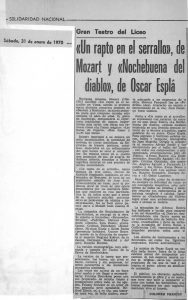 Critica – 31 gener 1970 – Solidaridad Nacional – Gran Teatre del Liceu – ‘Un rapto en el serrallo’, de Mozart i ‘Nochebuena del diablo’, d’Oscar Esplà