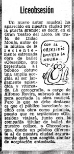 Critica – 1973 – Liceobsesión – Amb l’obsessió comença la neura …