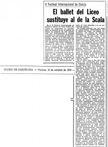 Posted on 2019-05-26 by webmaster Posted in Dades històriques, premsa . 1975-10-10-Diario de Barcelona-II Festival Internacional de Danza-El ballet del Liceo sustituye al de la Scala