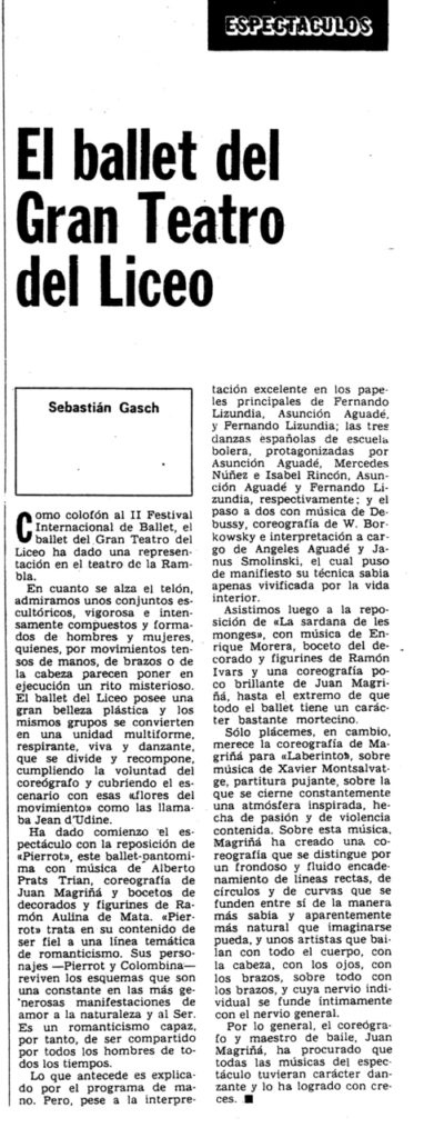- 1975-10-29-critica-II Festival Internacional-el ballet del gran teatro del Liceo-S. Gasch