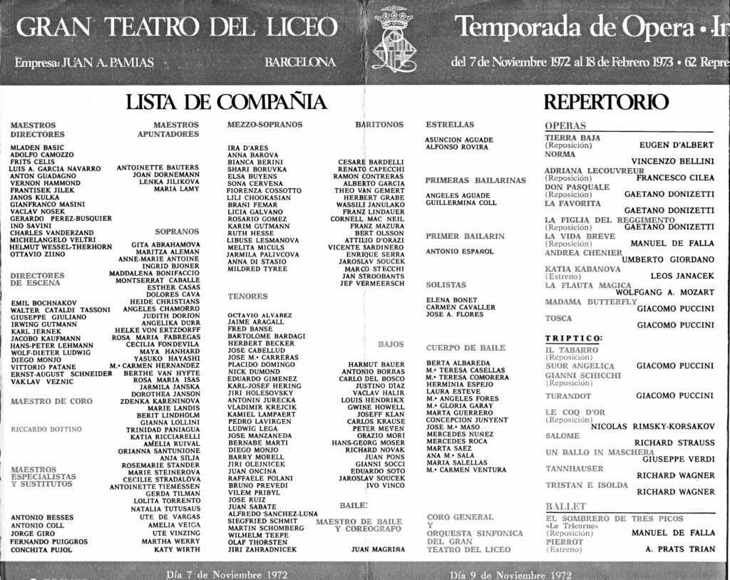 Llista 1972/73 de la Companyia de Ballet del Gran Teatre del Liceu