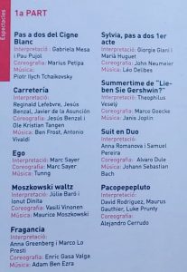 Feliç confirmació un cop més del gran potencial i talent dels ballarins catalans en una preciosa gala que, magníficament dirigida per Marisa Yudes, presentava vuit coreografies ben heterogènies perfectament servides, amb grans clàssics (passos a dos d'”El llac dels cignes”, “La nit de Walpurgis”, “Diana i Acteó” i “Don Quixot”) i creació contemporània (“Jeux”, “Wrong”, “Take me with you” i “Dust”).