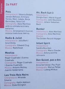 Tarda del 17-07-2022,Girona, Teatre Municipal, ànimes solidàries i generoses concentrades, nobles causes. Meravellós constatar de nou el doll de talent i potencial de les noves generacions de ballarins tot servint el proïsme amb somriures i joia: una superba gala, “Catalunya dansa contra el càncer”, dins el Festival Solidari de Dansa i Salut (sota l’aixopluc de ‘Girona en moviment’; recordem la gran acollida gironina a LiceXballet el passat 4 de maig), amb disset coreografies ben diferents i resultats molt reeixits.Un plaer pels ulls.