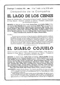 _ Programa de Ballets de Barcelona – 7 octubre 1951 – Teatre Principal – EL LAGO DE LOS CISNES – EL DIABLO COJUELO – LA REVOLTOSA