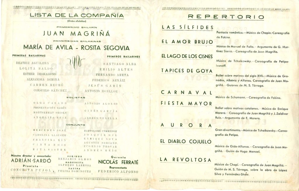 _ Programa de Ballets de Barcelona – 6 juny 1951 – Teatre Pereda(Santander) – LAS SILFIDES – TAPICES DE GOYA – EL AMOR BRUJO