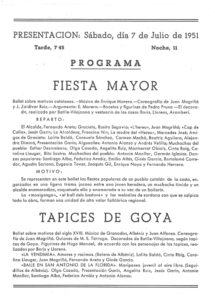 _ Programa Ballets de Barcelona – 7 juliol 1951 – Teatre Olimpia(Oviedo)- FIESTA MAYOR-TAPICES DE GOYA-EL AMOR BRUJO-