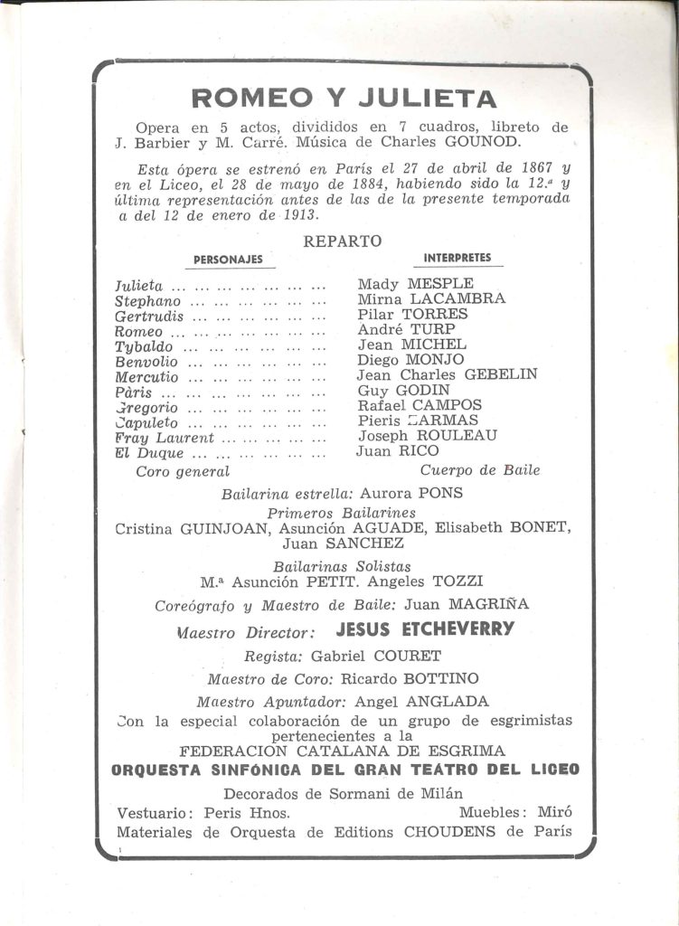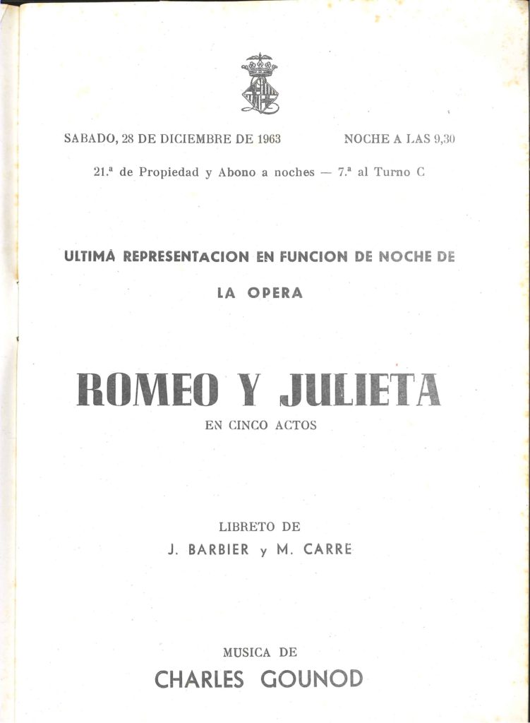 _ Programa del Liceu – 28 febrer 1963 – ROMEO Y JULIETA-