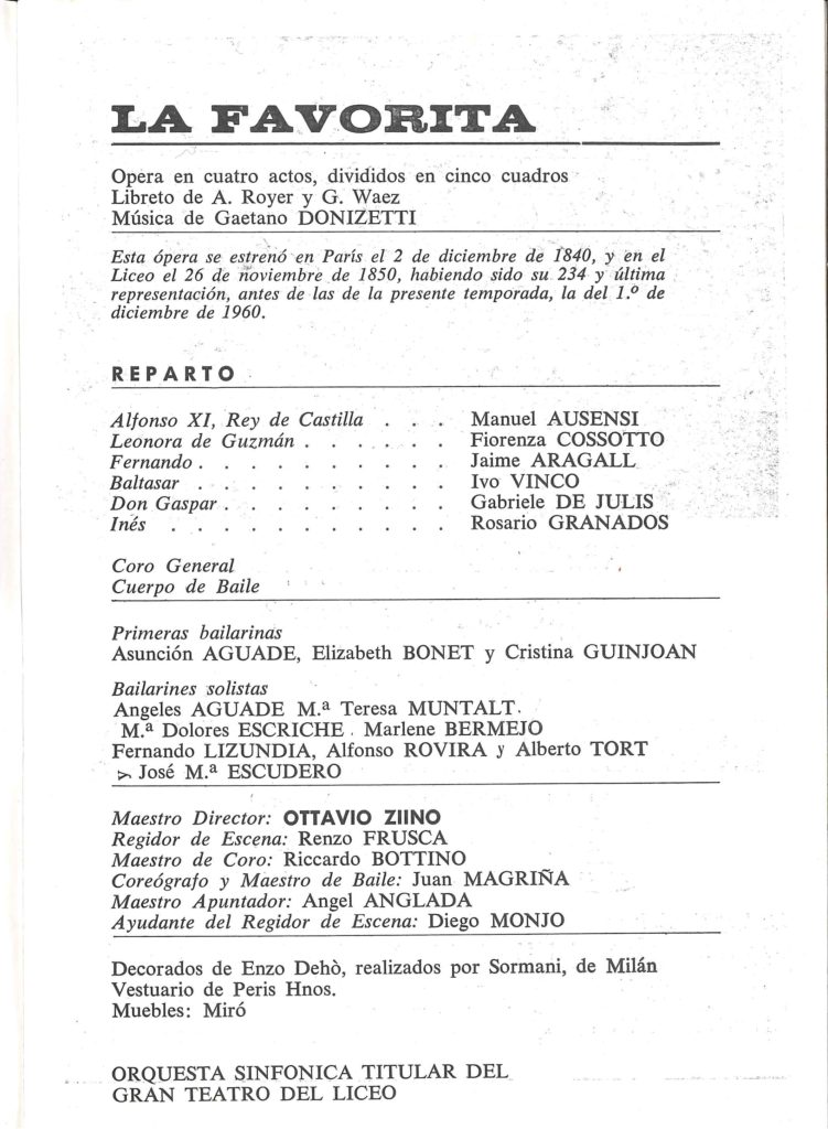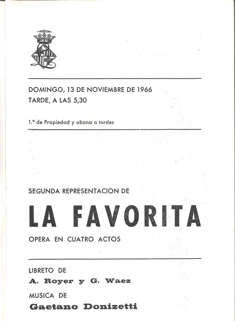 _ Programa del Liceu – 13 novembre 1966- LA FAVORITA –