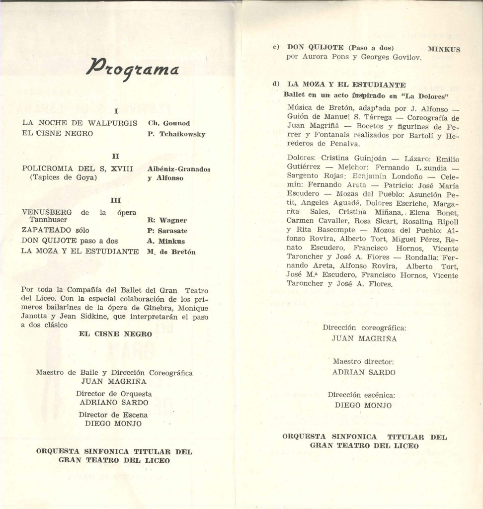 - 1966-06-29-Teatro Fortuny de Reus – programa 1ª y 2ª parte-la noche de walpurgis-el cisne negro-don quijote-gaviotas